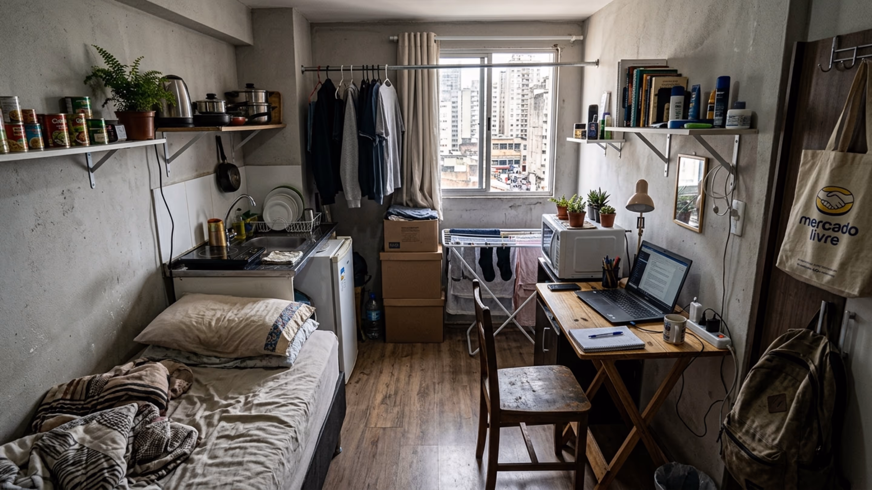 Em São Paulo, a moradia encolheu. Em vez de sala, corredor e quarto separados, muita gente vive em um único cômodo que acumula funções de escritório, cozinha, quarto e espaço de descanso. A alta dos aluguéis empurra moradores para microapartamentos, hostels e até hotéis cápsula, levantando a questão: quanto custa viver espremido e que tipo de vida cabe em poucos metros quadrados?