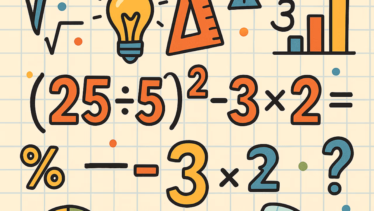 Quanto é (25 ÷ 5)² – 3 × 2? A expressão que derruba até os melhores em matemática