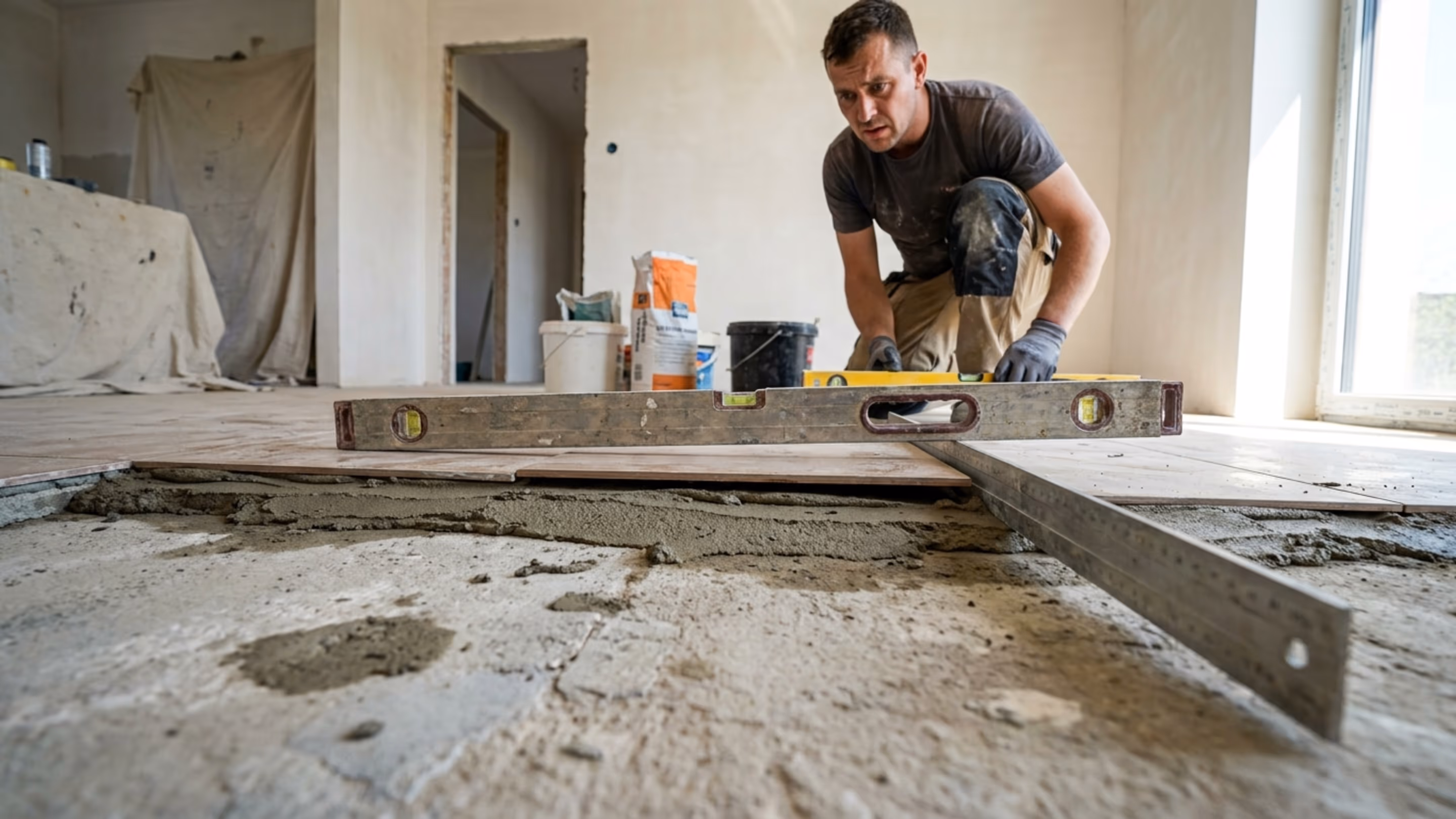Entenda por que nivelar e corrigir a base antes de assentar piso evita peças ocas, rejunte desigual e retrabalho na obra