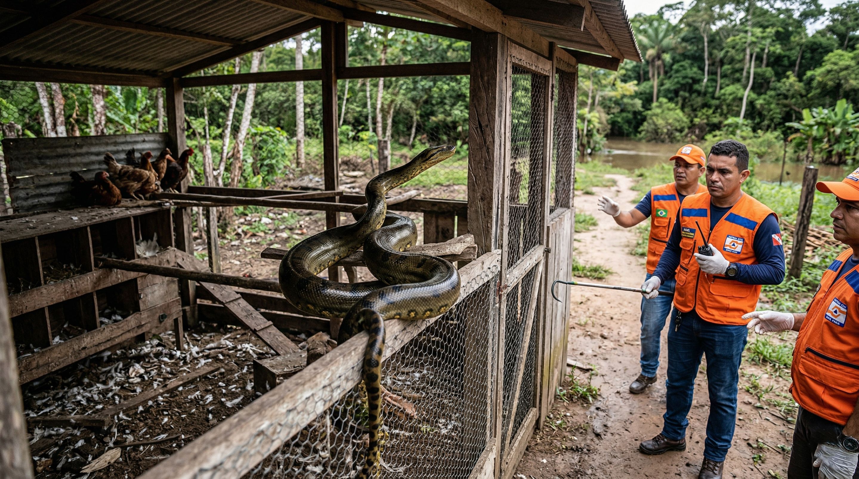 Um encontro pouco comum chamou a atenção de moradores de Ourém, no nordeste do Pará, quando uma sucuri foi encontrada dentro de um galinheiro e mobilizou a Defesa Civil do município, expondo mais uma vez a proximidade entre áreas habitadas e ambientes naturais na região amazônica, onde animais silvestres circulam com frequência.