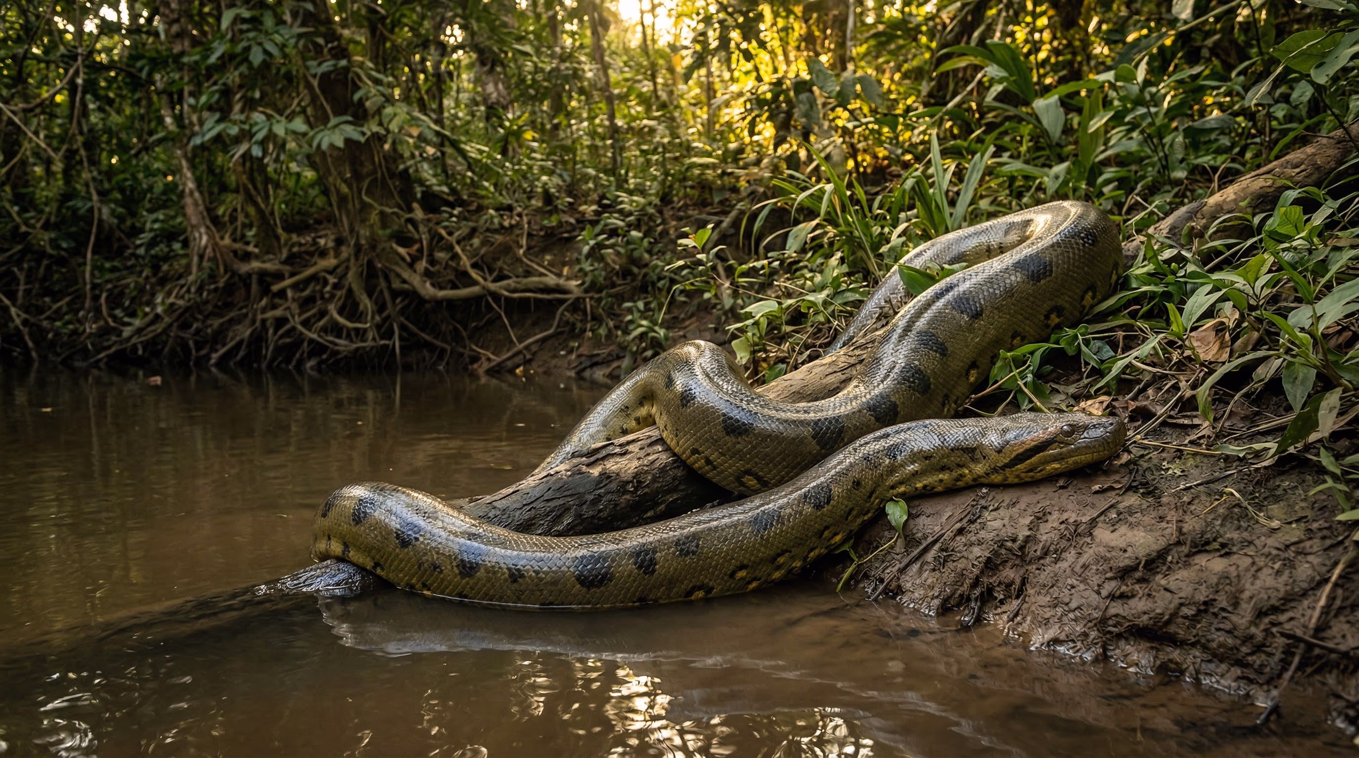 Veja por que a sucuri-verde fica imóvel na margem de rios calmos e como esse comportamento se conecta à caça e à regulação térmica