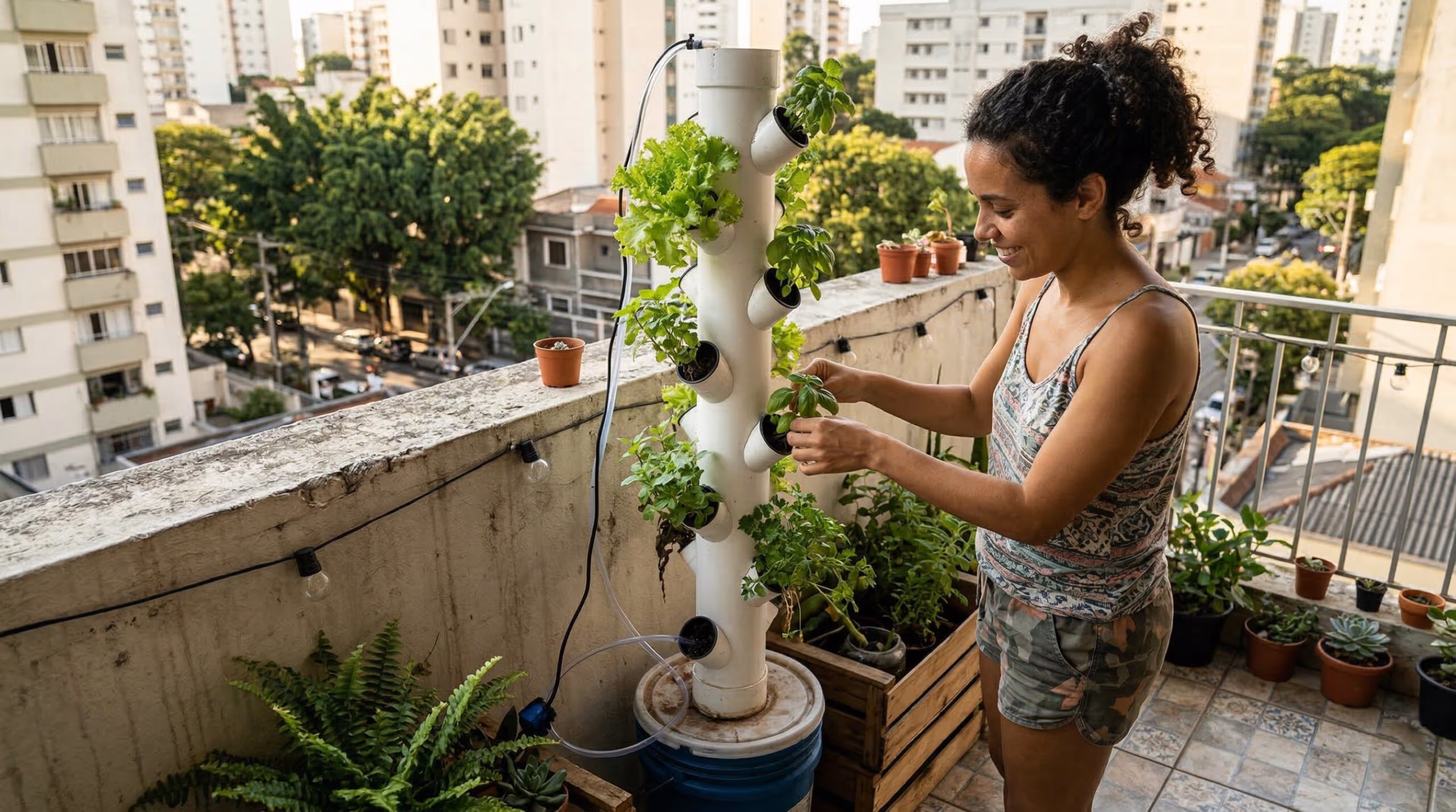 Montar um sistema hidropônico vertical sem vasos deixou de ser algo restrito a estufas profissionais e passou a ser uma alternativa prática para quem tem pouco espaço em casa, usando um tubo de PVC como coluna principal, um balde com solução nutritiva na base e uma bomba que cria uma “chuva” interna que alimenta as raízes das plantas continuamente.
