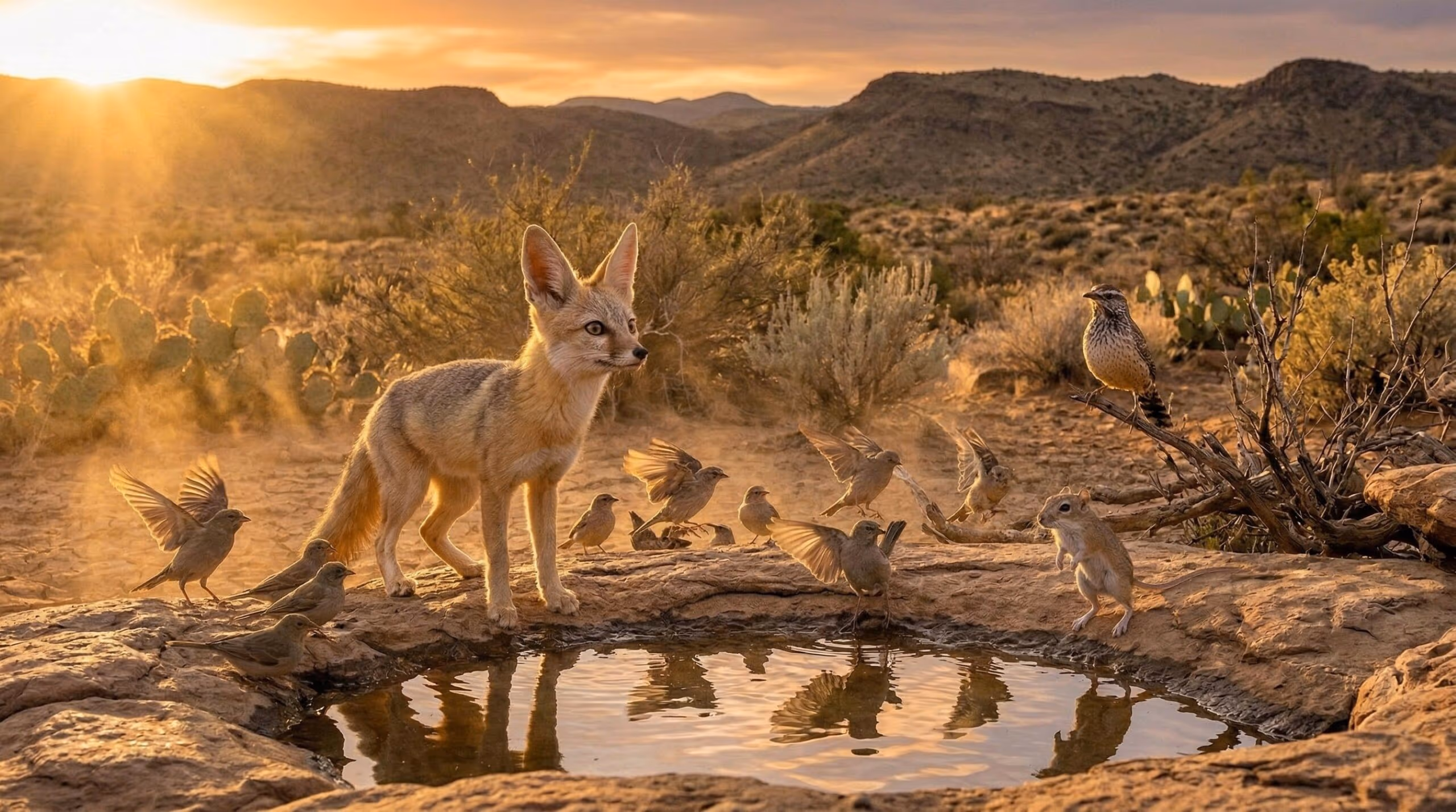 Ao mostrar aves, raposas e roedores se aproximando com cautela, essas imagens sintetizam longos processos evolutivos, nos quais apenas indivíduos capazes de conciliar consumo de água e segurança deixam descendentes. Assim, cenas aparentemente simples revelam um sofisticado repertório de estratégias de sobrevivência em ambientes áridos.