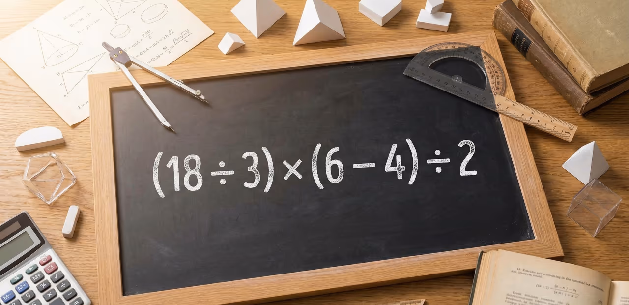Você consegue resolver a equação (18 ÷ 3) × (6 – 4) ÷ 2 em menos de 1 minuto?