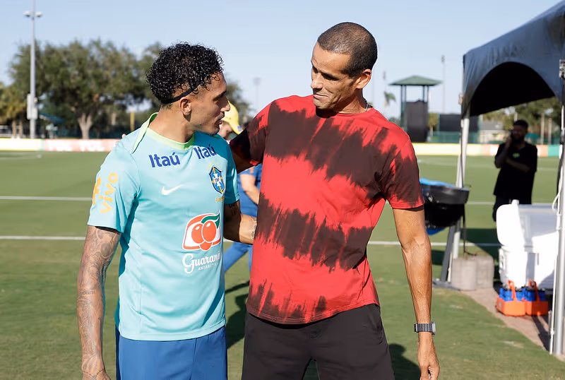 Pentacampeão Rivaldo visita a Seleção Brasileira durante treino em Orlando nessa sexta-feira 31/05. Foto: Rafael Ribeiro/CBF