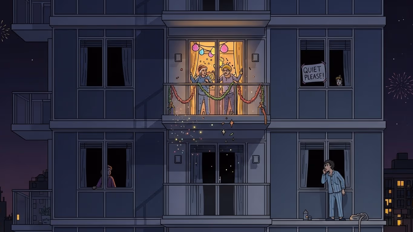 O resultado é previsível: reclamações, ameaças, chamadas para a polícia e, no dia seguinte, um condomínio mais irritado do que antes da comemoração.