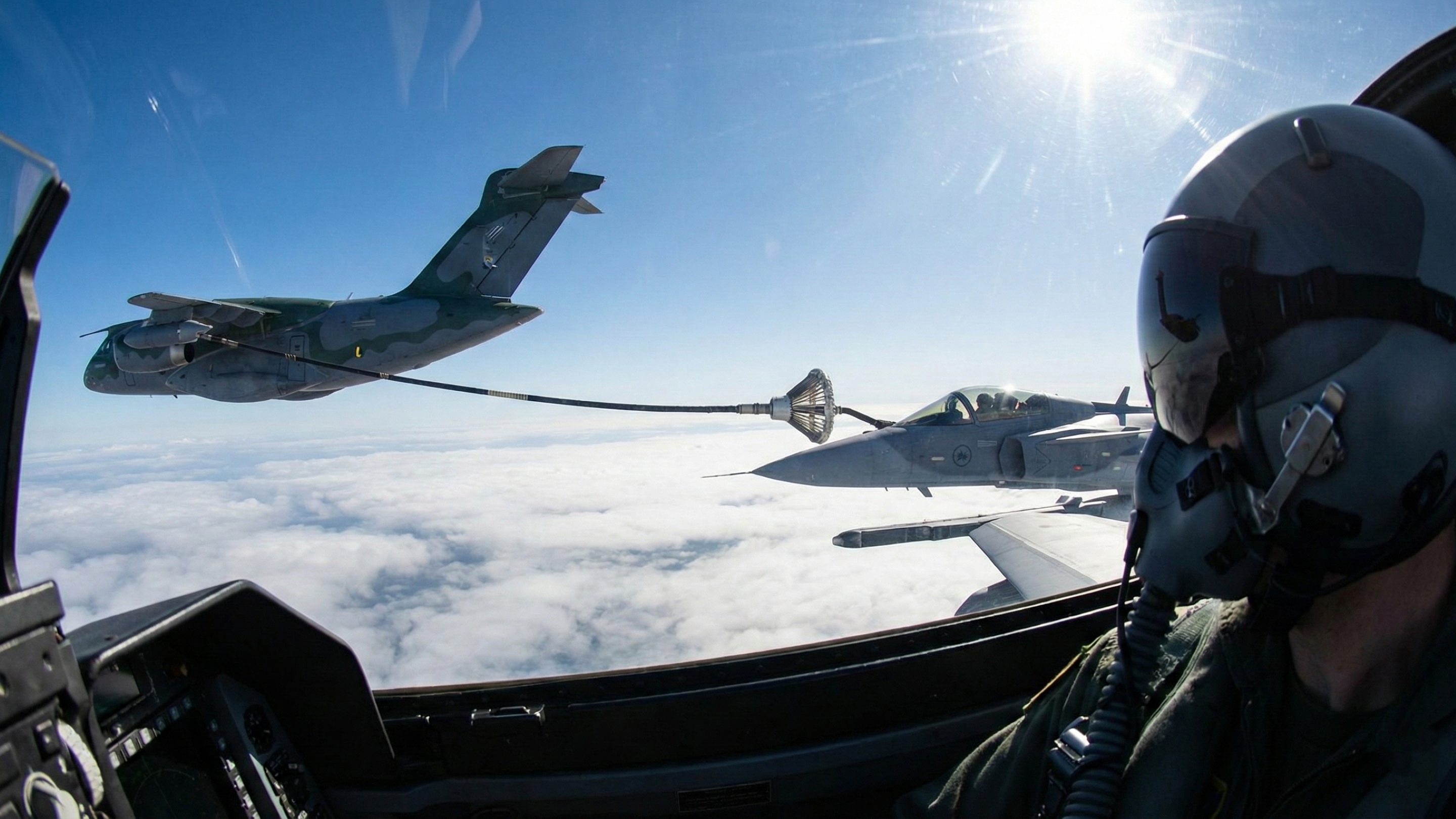 Recentemente tivemos o teste de reabastecimento aéreo dos nossos caças Gripen, como é mostrando nesse vídeo da Saab no YouTube: