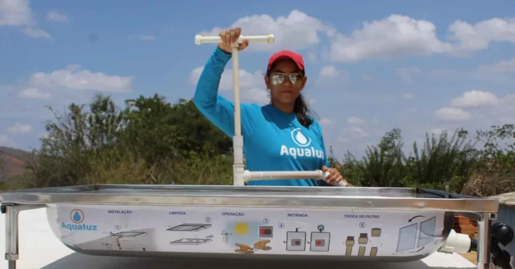 Anna Luisa Beserra formou-se em Biotecnologia pela Universidade Federal da Bahia (UFBA). Quando ainda estava no ensino médio, ela viu um cartaz, na escola particular onde estudava, em Salvador, sobre o Prêmio Jovem Cientista, promovido pelo Conselho Nacional de Desenvolvimento Científico e Tecnológico (CNPq). O tema daquela edição, em 2013, era a água. “Desde a escola, a gente estuda sobre a falta de acesso a água potável no semiárido, como esse problema é grave. Seria minha primeira oportunidade de ser cientista”, lembra. Embora não tenha sido premiada, nascia, ali, o primeiro protótipo do Aqualuz.