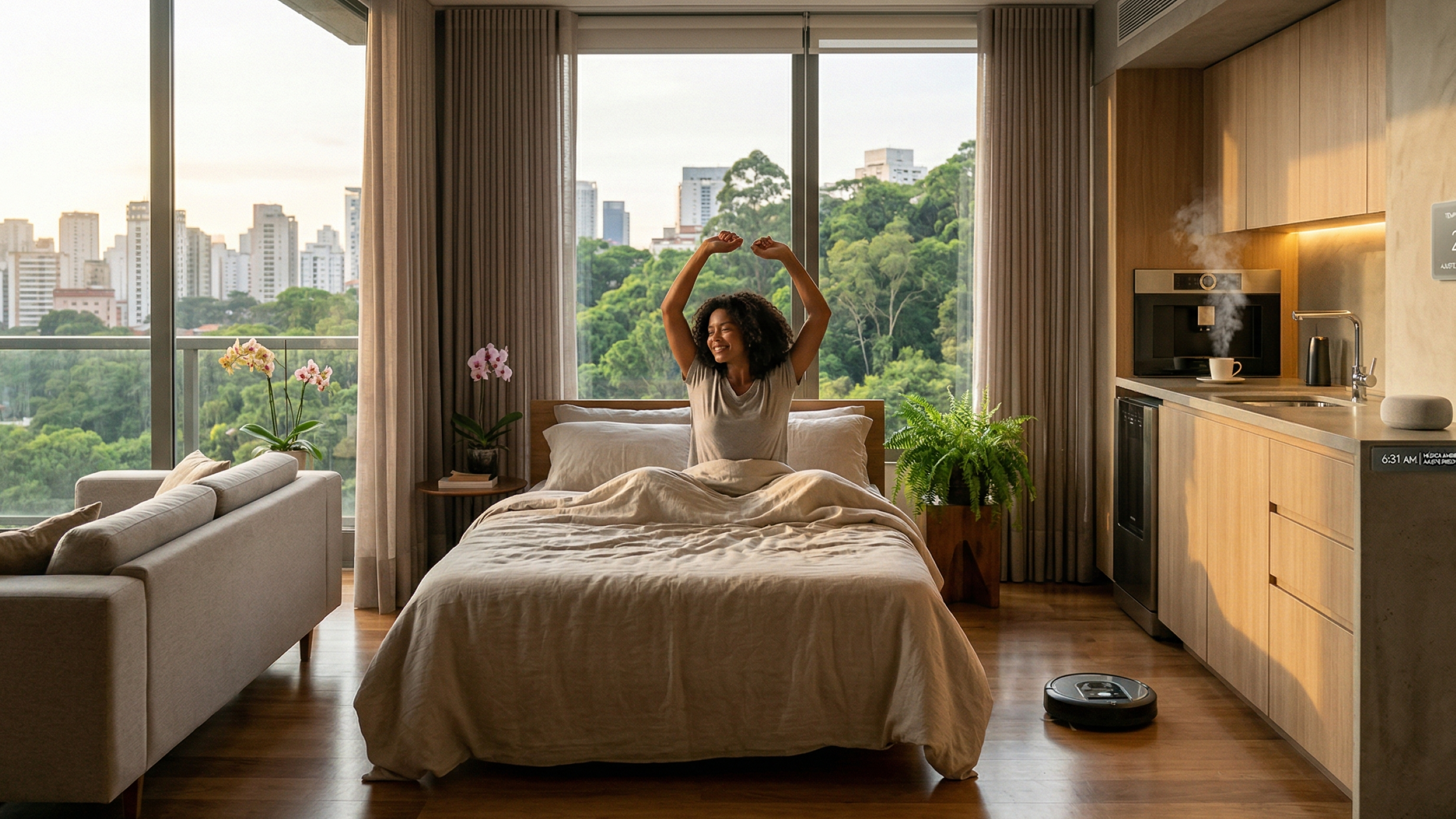 A diferença aparece quando a casa para de depender de comando o tempo inteiro. Em vez de você montar tudo manualmente, parte da experiência começa a ser guiada por contexto, presença e histórico de uso.