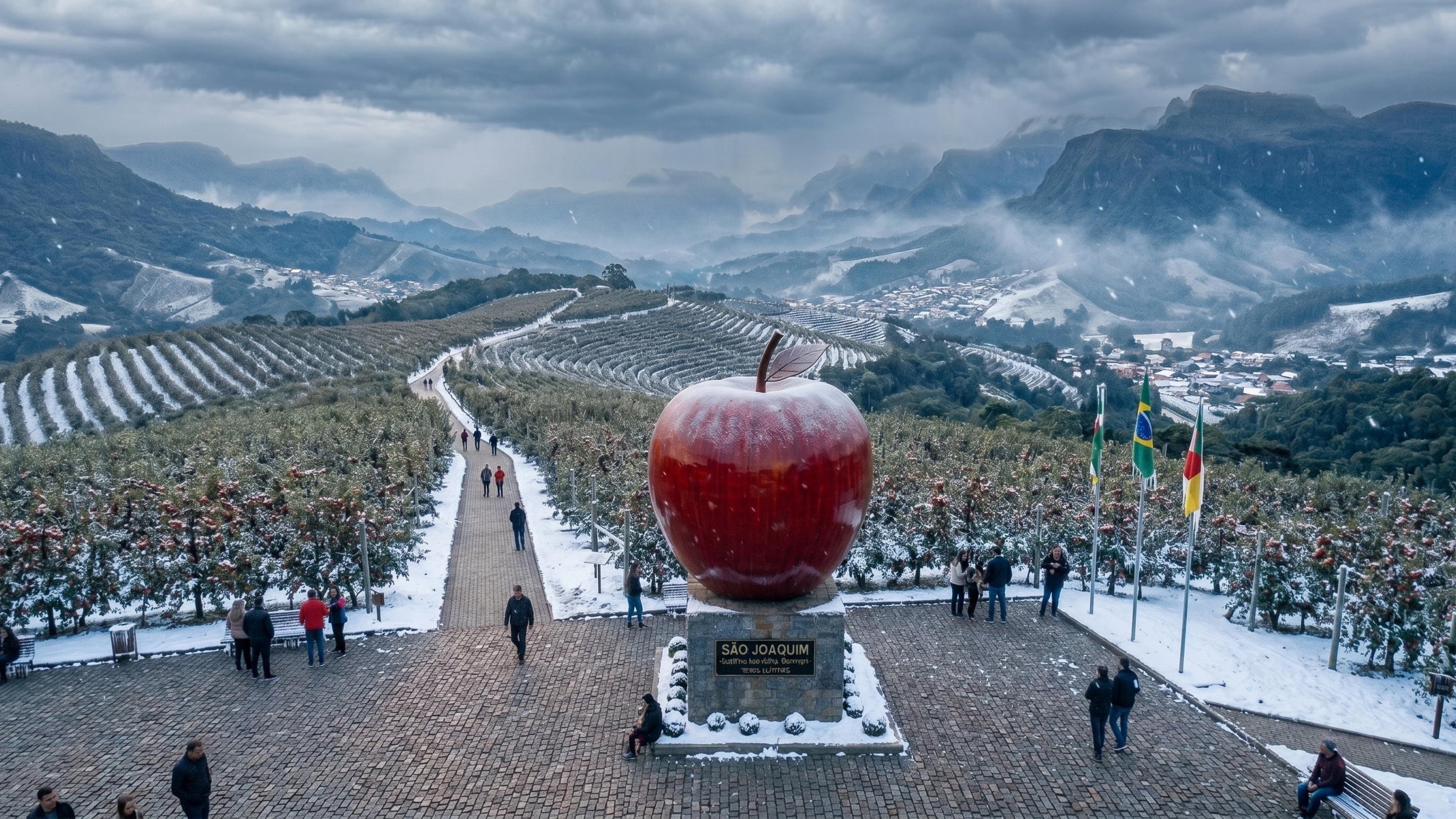 A 1.360 metros acima do nível do mar, no topo da Serra Catarinense, São Joaquim concentra o que poucos municípios brasileiros podem oferecer juntos: inverno rigoroso com neve ocasional, a maior produção de maçã do país e vinhedos de altitude premiados no exterior. Uma cidade onde o frio virou economia.