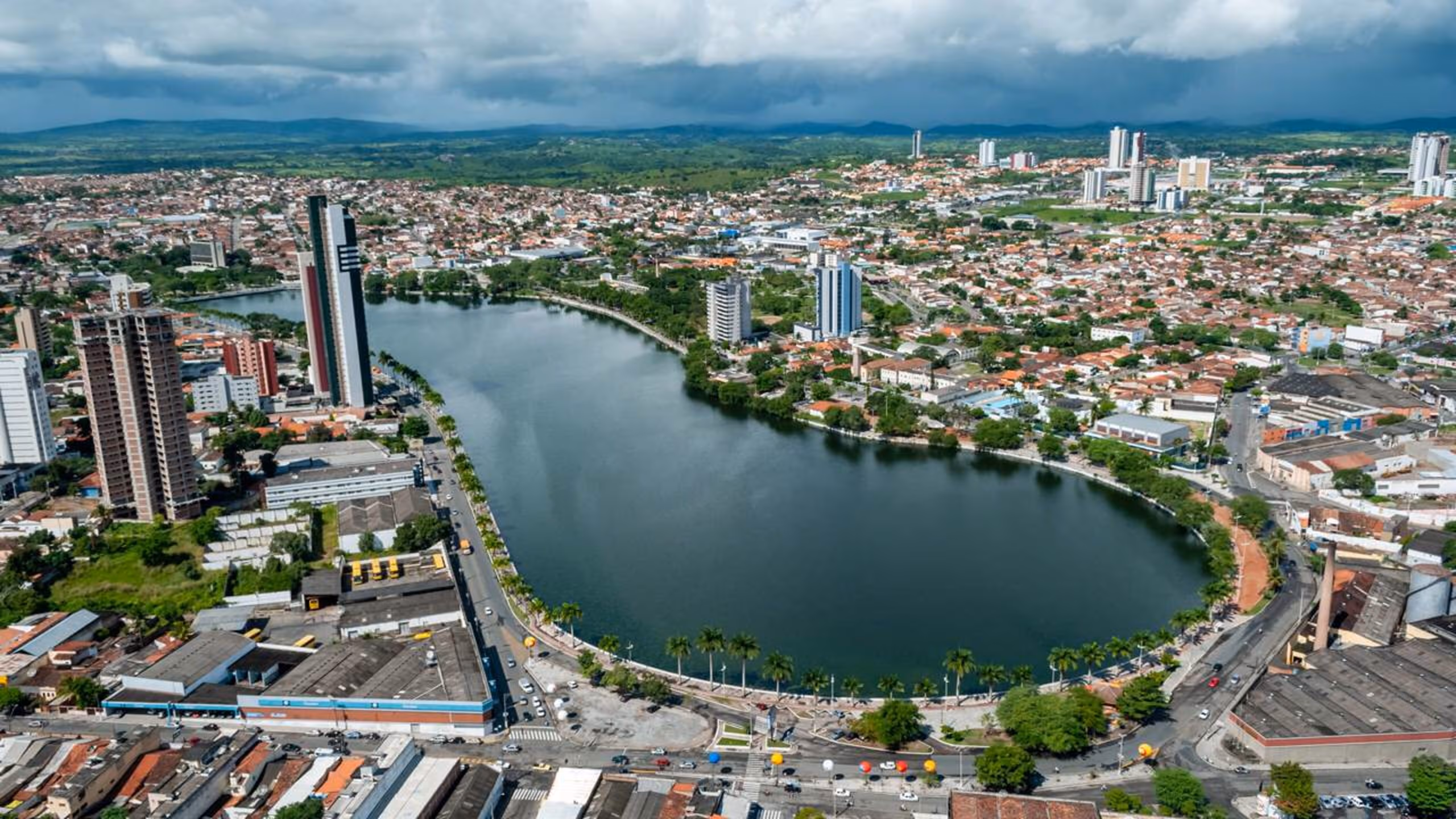- Açude Velho: cartão-postal urbano com pista de caminhada e vista dos prédios refletidos na água ao entardecer.