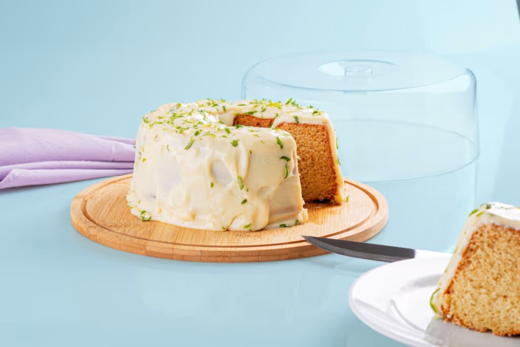 Em uma tigela, misture o leite condensado com o suco de limão aos poucos, mexendo com uma colher ou fouet, até formar uma cobertura lisa e levemente espessa. Espalhe sobre o bolo ainda morno, finalize com as raspas de limão e sirva.