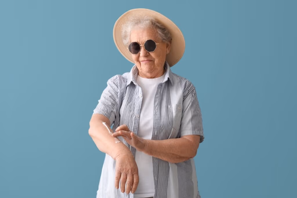 Para os idosos, a dica é escolher produtos com textura mais hidratante e fórmulas suaves, sem álcool ou fragrâncias fortes, para não ressecar ou irritar a pele. “É importante lembrar também das áreas esquecidas como orelhas, pescoço e dorso das mãos, que recebem muita radiação solar”, acrescenta Tatiane Ayumi Tokashiki.
