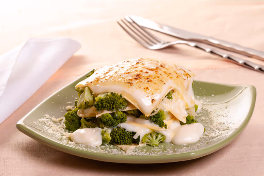 Lasanha de brócolis com molho branco