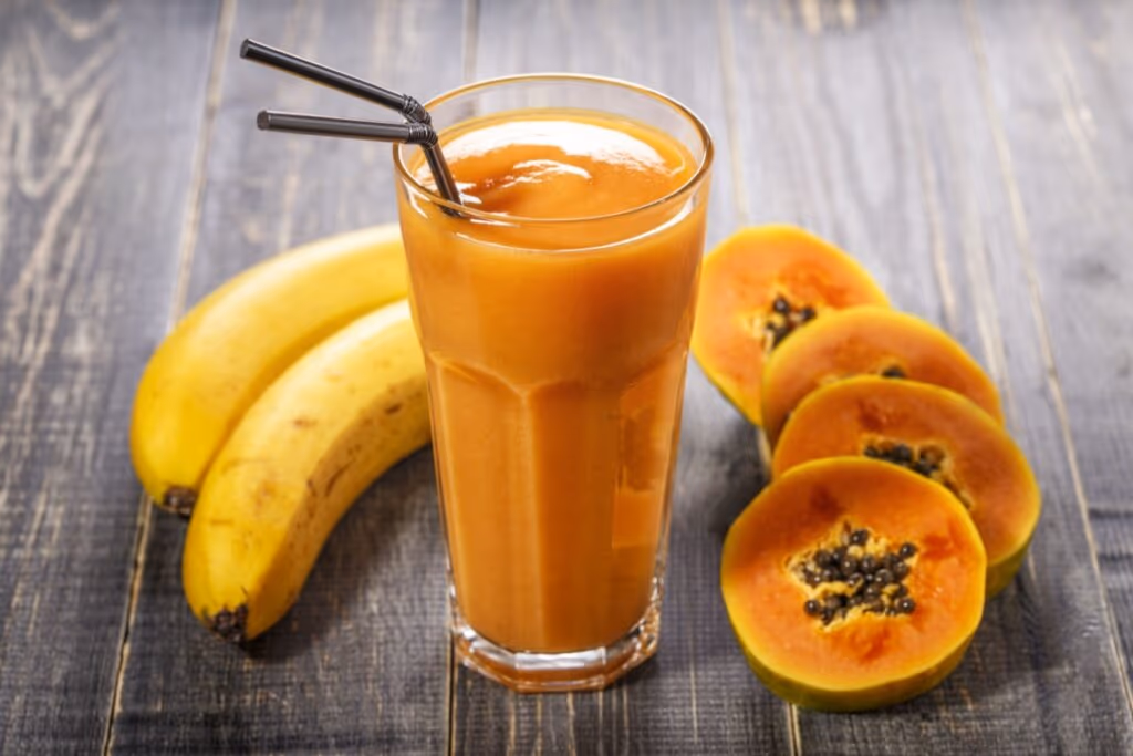 O mamão é um ingrediente nutritivo e versátil, considerado uma ótima escolha para incluir no preparo de vitaminas. Rico em fibras, vitaminas como A, C e do complexo B, além de minerais importantes como potássio e magnésio, ele contribui para o bom funcionamento do organismo e fortalece a imunidade.