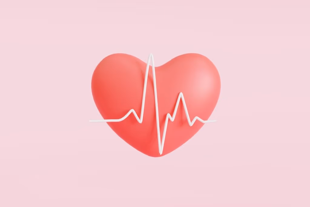 ilustração de coração vermelho com batida em cima em fundo rosa