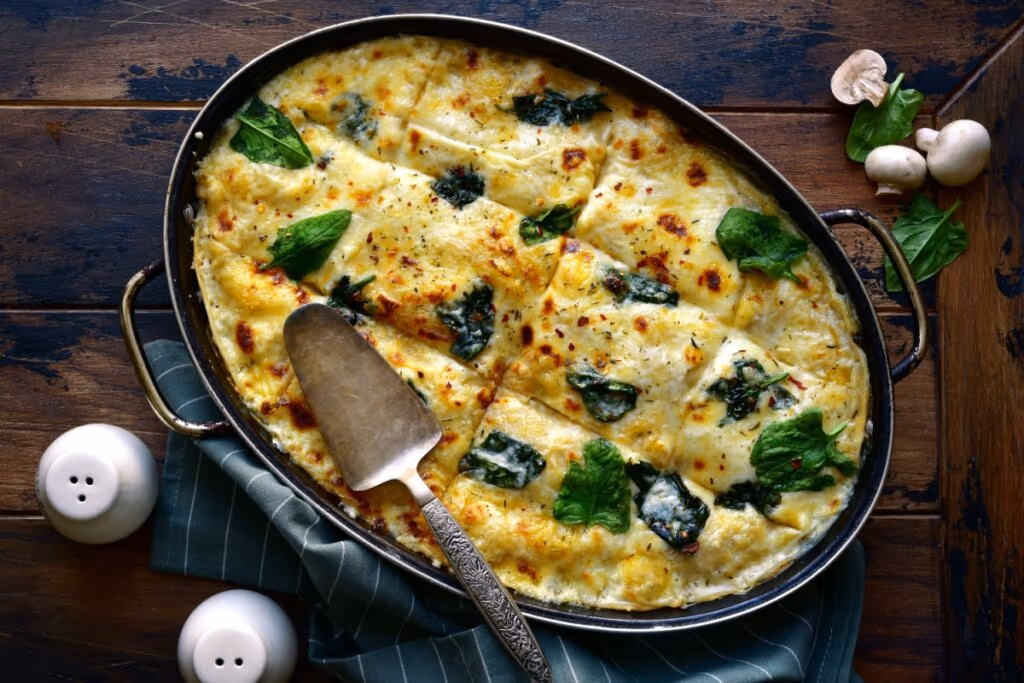 3. Lasanha de cogumelo com espinafre