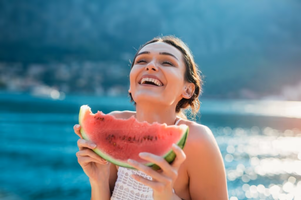 A alimentação é uma aliada poderosa na manutenção da hidratação. Pablo Henrique Cordeiro Lessa indica frutas ricas em água como melancia, melão, laranja, abacaxi e morango, além de legumes e verduras hidratantes como pepino, tomate e alface. Iogurtes naturais, kefir (bebida fermentada probiótica) e sopas frias também são bem-vindas.