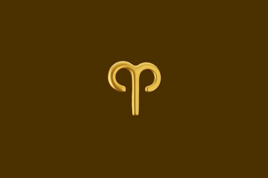 Ilustração do símbolo do signo de Áries dourado em um fundo marrom