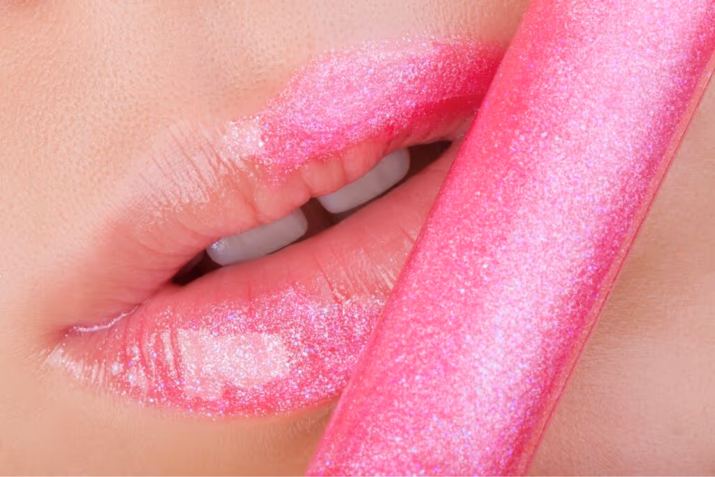 5. Lip gloss com glitter ou partículas holográficas
