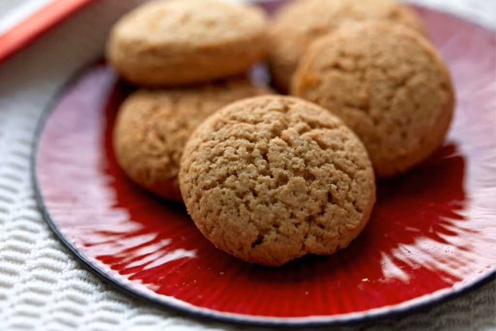 Em um recipiente, coloque todos os ingredientes, exceto a água, e misture. Aos poucos, adicione a água e mexa até obter uma massa homogênea. Após, com a ajuda de uma colher, pegue um pouco de massa, modele no formato de uma bolinha e achate com as mãos. Disponha sobre uma assadeira untada com óleo de coco e repita o processo com toda a massa. Leve ao forno preaquecido a 180 °C por 30 minutos. Sirva em seguida.