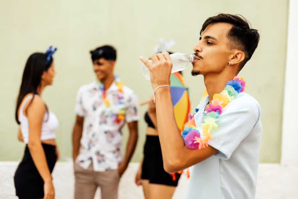 Beber água durante a folia previne a desidratação (Imagem: Kleber Cordeiro | Shutterstock)