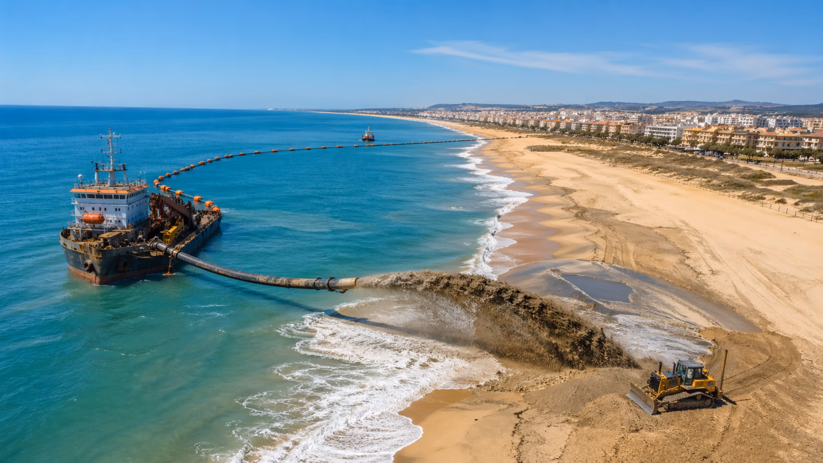 A retirada de areia do fundo do mar para reforçar o areal entre Quarteira e Garrão revela uma solução sofisticada para conter a erosão costeira, ao mesmo tempo em que valoriza um dos destinos mais desejados da Europa.