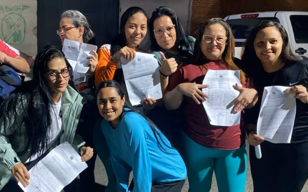 “Uma das primeiras imagens de algumas das mulheres que foram detidas arbitrariamente no Centro de Treinamento para Mulheres Detidas “La Crisálida”, localizado em Los Teques, Caracas, e que foram libertadas esta manhã”, escreveu a Foro Penal no X, divulgando a foto de algumas das mulheres libertadas.