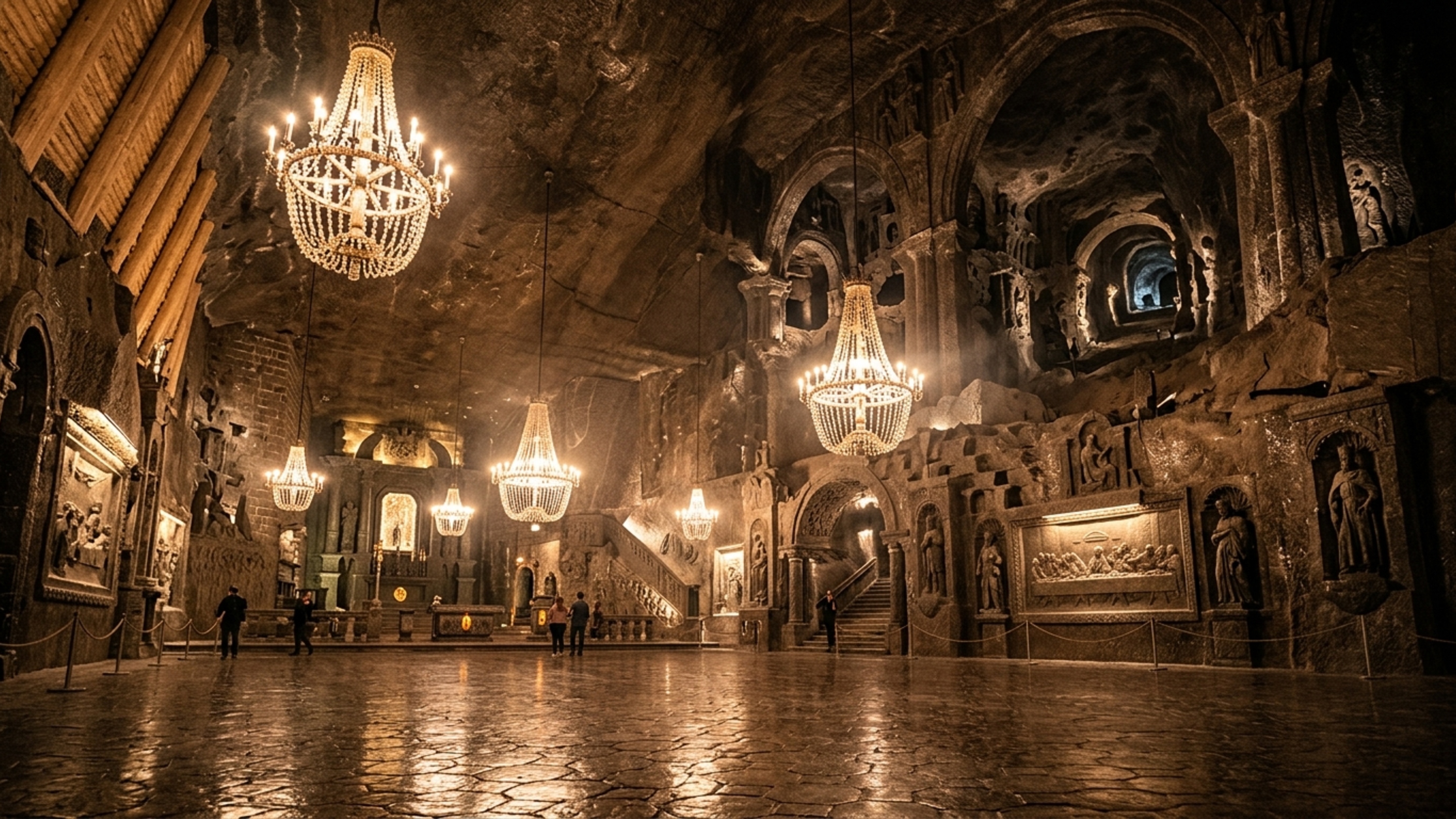 Com turismo organizado desde o século XVIII, Wieliczka oferece hoje percursos iluminados, sinalizados e seguros. Entre câmaras escavadas à mão, surgem estátuas, relevos, lagos subterrâneos e estruturas de madeira históricas, muitas ainda funcionais ou restauradas.